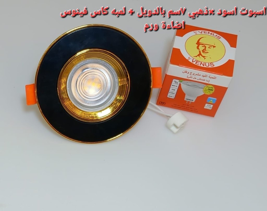 كمية اسبوت اسود*دهبى 7 سم بالدويل+ لمبه كأس فينوس اضاءة وورم