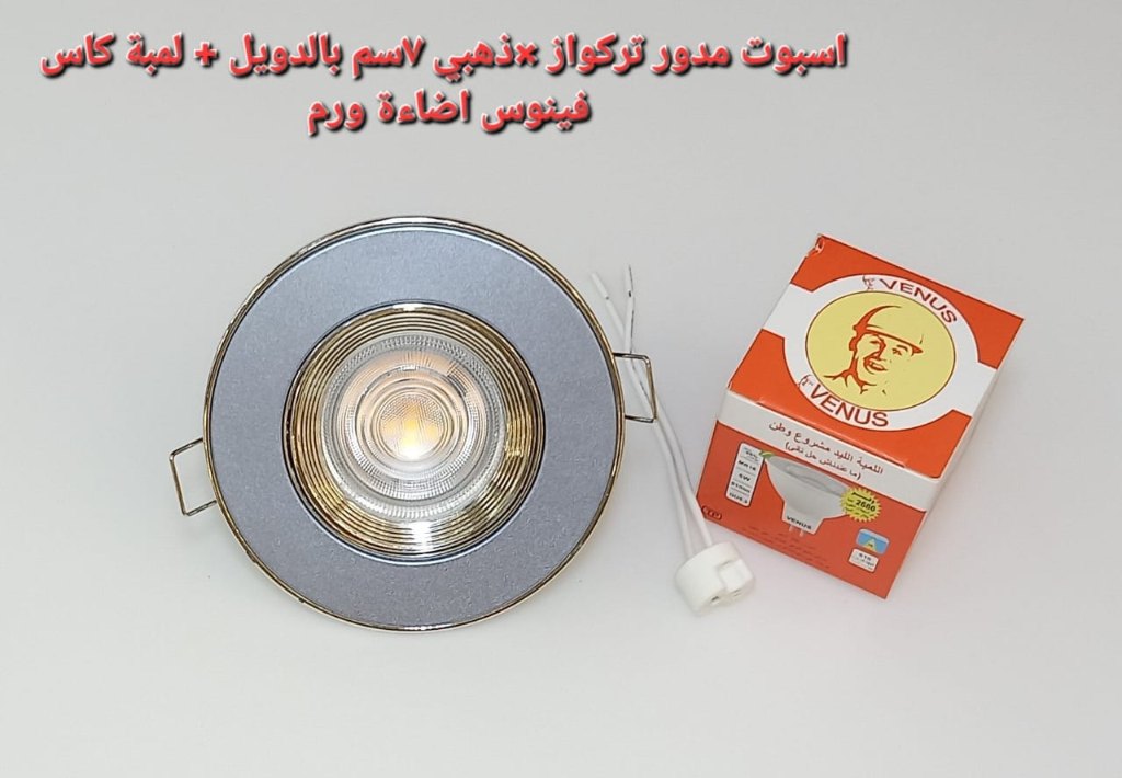 كمية اسبوت تركواز*ذهبى 7 سم بالدويل+ لمبه كأس فينوس اضاءة وورم