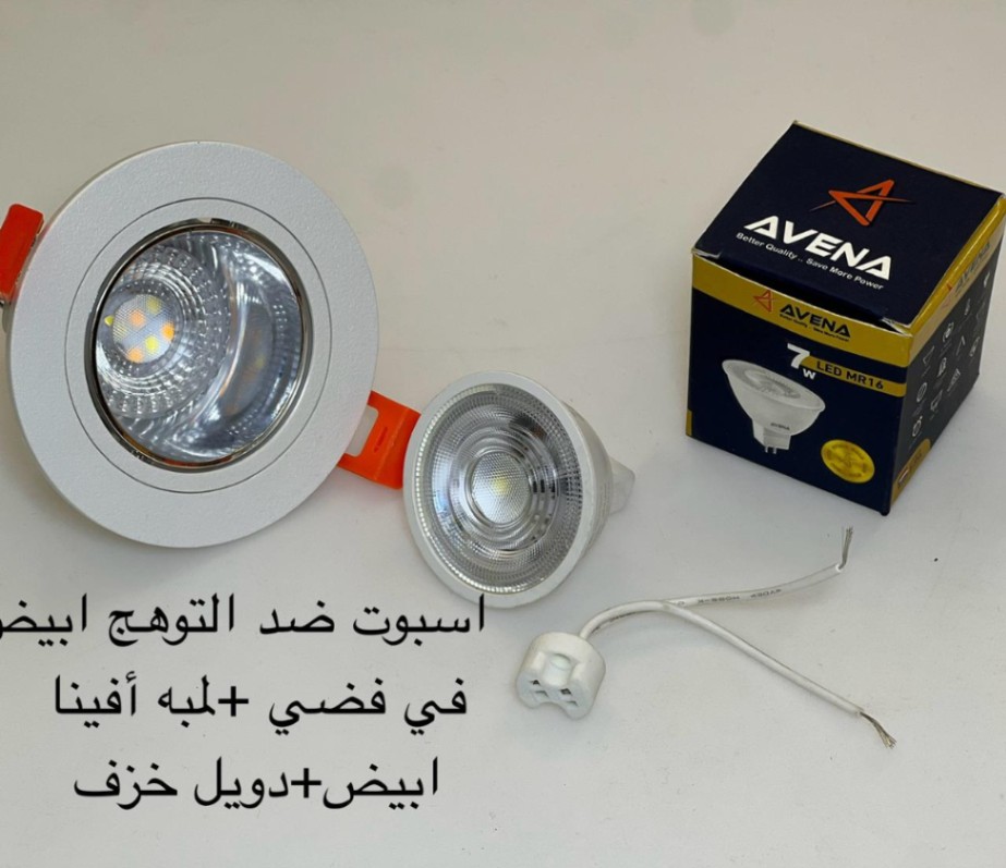 / اسبوت ضد التوهج أبيض x فضي + لمبة أفينا أبيض + دويل خزف