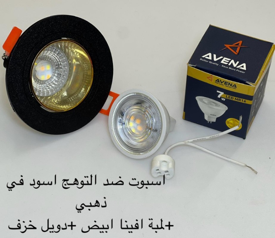 كمية اسبوت ضد التوهج اسود x ذهبي + لمبة أفينا أبيض + دويل خزف