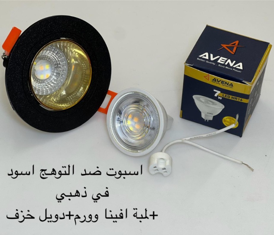اسبوت ضد التوهج اسود x ذهبي + لمبة أفينا وورم + دويل خزف