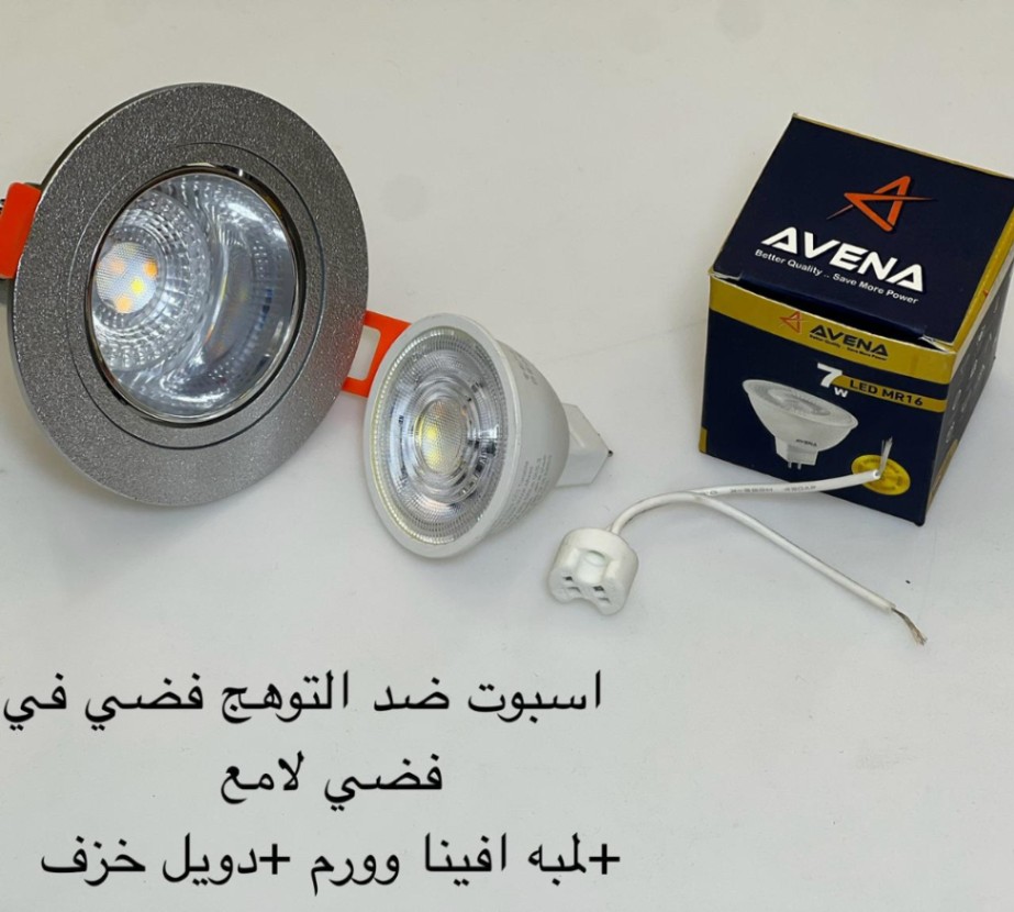 شاسيه اسبوت أبيض*فضي 7سم شاسيه اسبوت اسود*دهبي بالدويل+لمبه كأس افينا جولد إضاءة ابيض