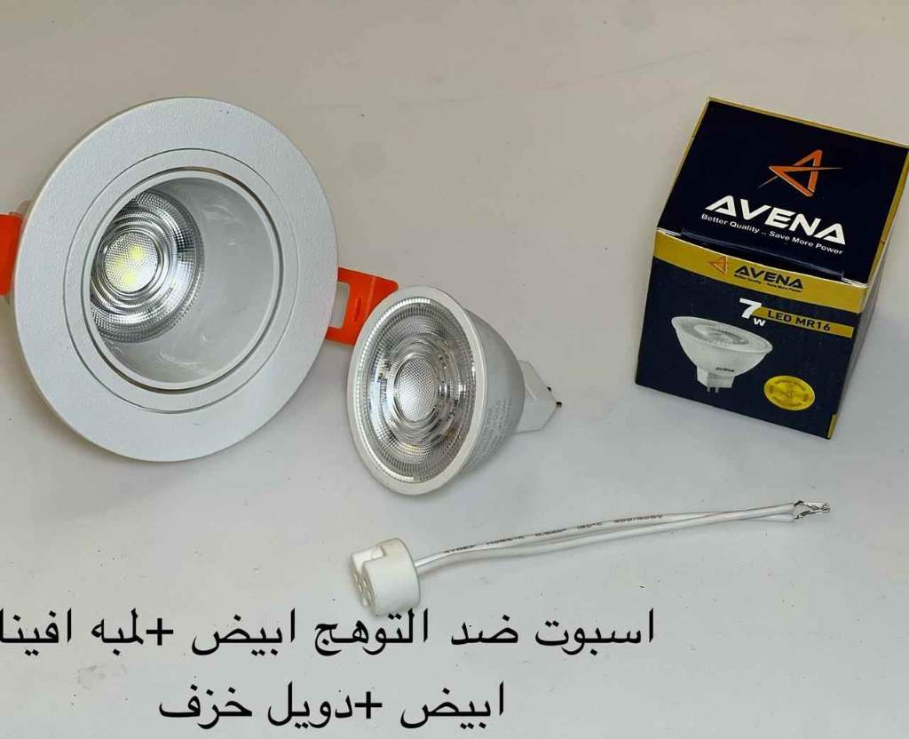 كمية اسبوت ضد التوهج مدور أبيض + لمبة أفينا أبيض + دويل خزف