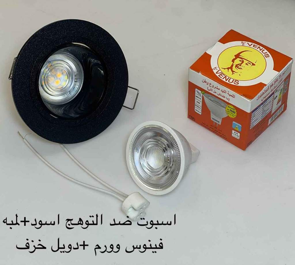 / اسبوت ضد التوهج مدور اسود + لمبة كاس فينوس وورم + دويل خزف