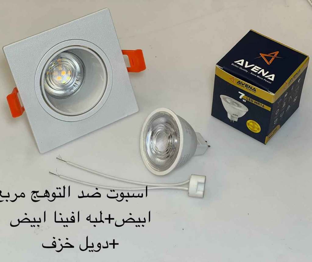 / اسبوت ضد التوهج مربع أبيض + لمبة أفينا أبيض + دويل خزف