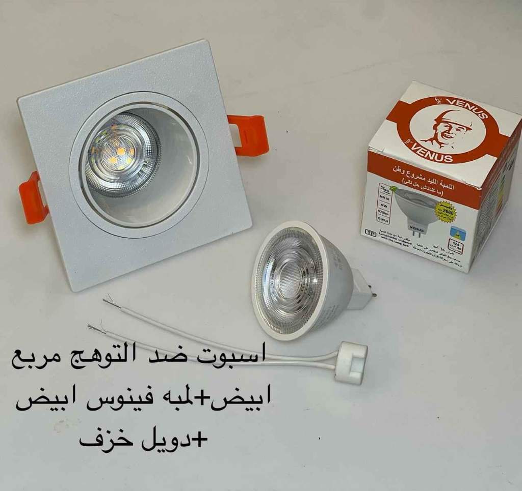 كمية اسبوت ضد التوهج مربع أبيض + لمبة فينوس أبيض + دويل خزف