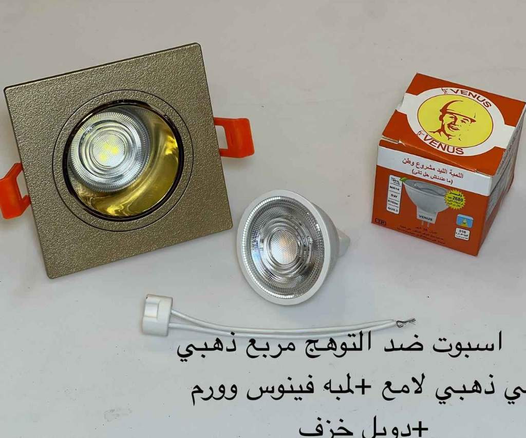 / اسبوت ضد التوهج مربع ذهبي x ذهبي لامع + لمبة كاس فينوس وورم + دويل خزف