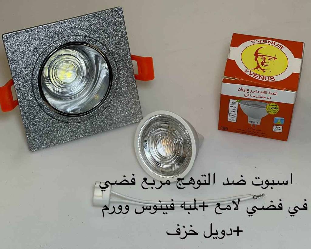 اسبوت ضد التوهج مربع فضي x فضي لامع + لمبة فينوس وورم + دويل خزف