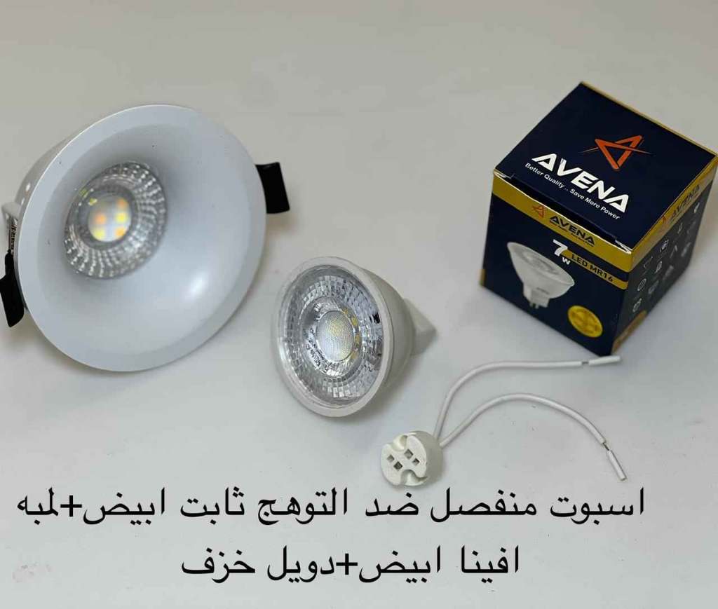 / اسبوت منفصل ضد التوهج ثابت أبيض + لمبة أفينا أبيض + دويل خزف