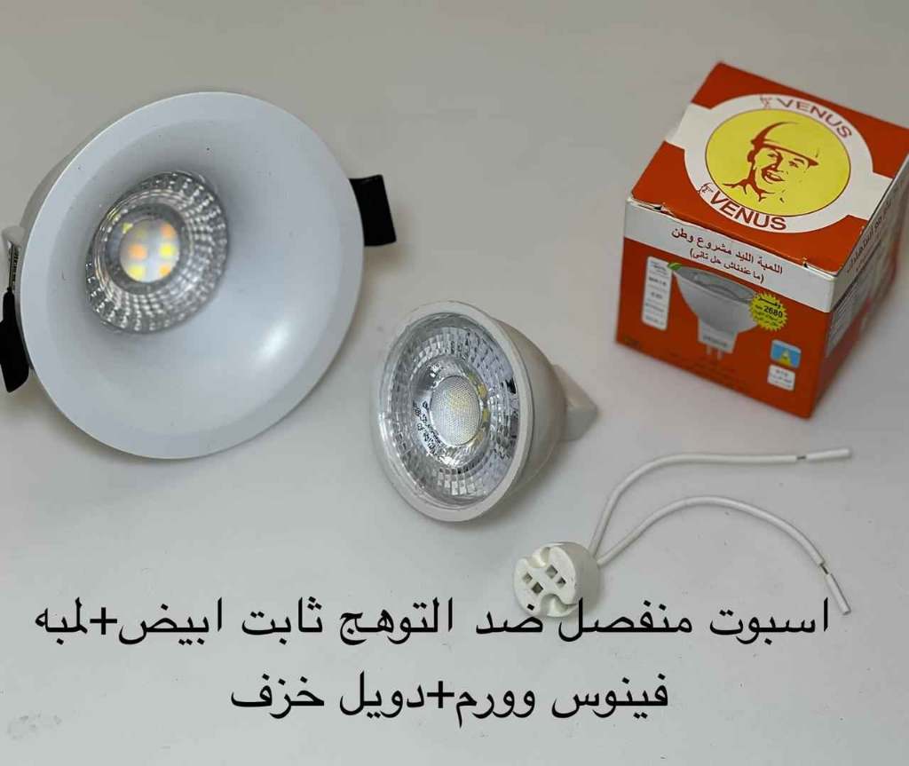 / اسبوت منفصل ضد التوهج ثابت أبيض + لمبة فينوس وورم + دويل خزف