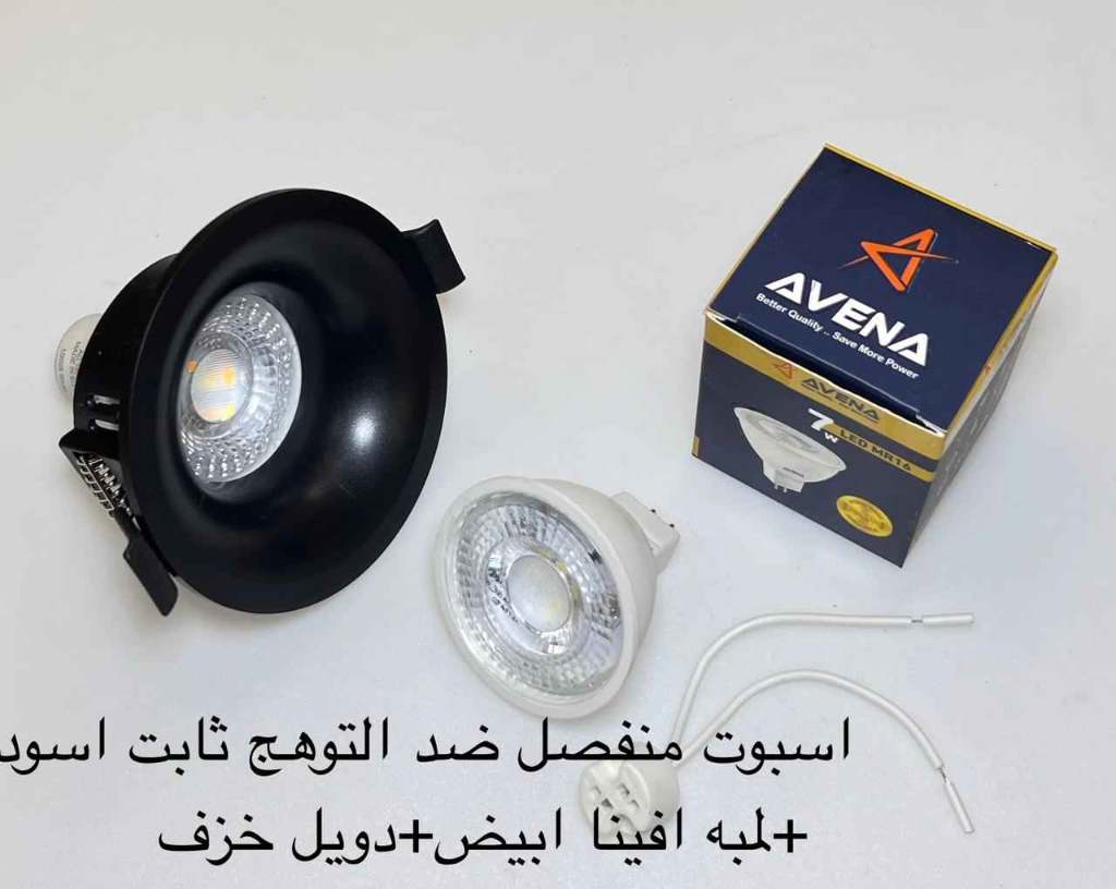 / اسبوت منفصل ضد التوهج ثابت أسود + لمبة أفينا أبيض + دويل خزف
