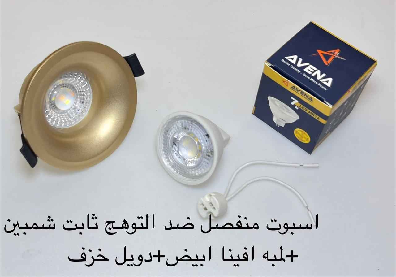 شاسيه اسبوت أبيض*فضي 7سم شاسيه اسبوت اسود*دهبي بالدويل+لمبه كأس افينا جولد إضاءة ابيض