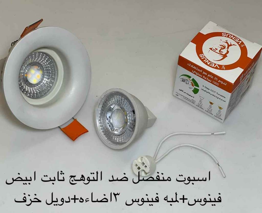 اسبوت منفصل ضد التوهج فينوس أبيض + لمبة فينوس 3 إضاءة + دويل خزف