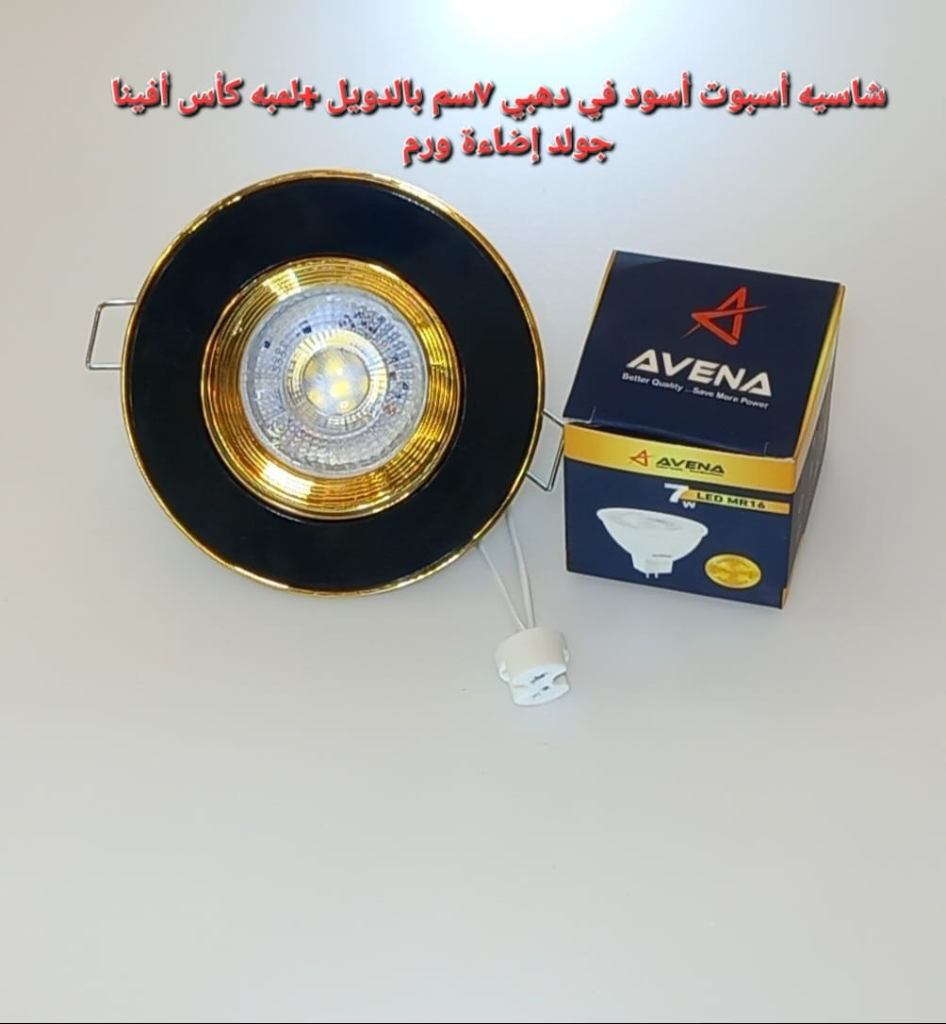 شاسيه اسبوت أبيض*فضي 7سم شاسيه اسبوت اسود*دهبي بالدويل+لمبه كأس افينا جولد إضاءة ابيض