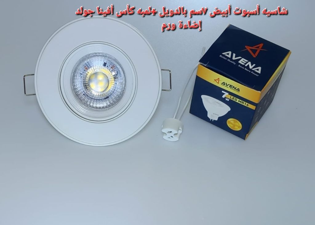 كمية شاسيه اسبوت أبيض 7سم +لمبه كأس افينا جولد إضاءة ورم