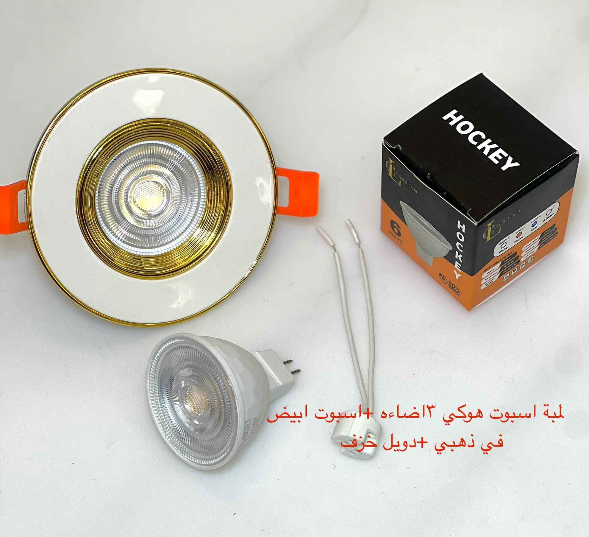 / شاسيه اسبوت أبيض x ذهبي + دويل خزف + لمبة اسبوت هوكي 3 إضاءة