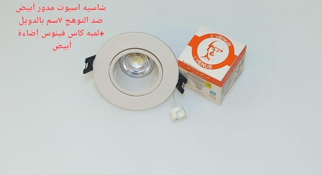 / شاسيه اسبوت ابيض مدور ضد التوهج 7 سم بالدويل + لمبه كأس فينوس اضاءة ابيض