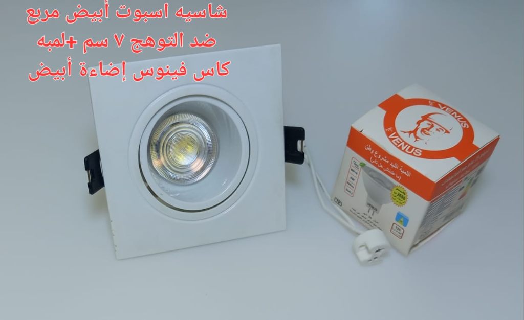 كمية شاسيه اسبوت ابيض مربع ضد التوهج 7 سم + لمبه كأس فينوس اضاءة ابيض