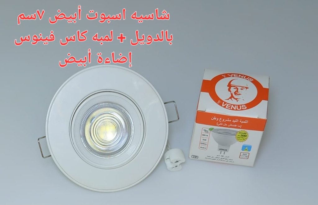 كمية شاسيه اسبوت ابيض 7 سم بالدويل+ لمبه كأس فينوس اضاءة ابيض