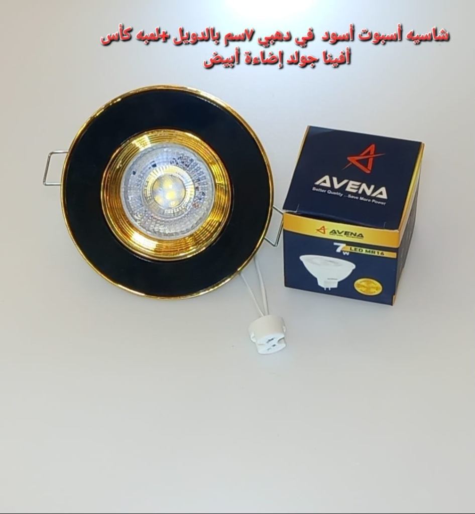 شاسيه اسبوت اسود*دهبي بالدويل+ لمبه كأس افينا جولد إضاءة أبيض