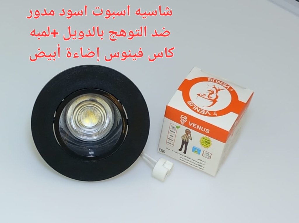 / شاسيه اسبوت اسود مدور ضد التوهج بالدويل+ لمبه كأس فينوس اضاءة ابيض