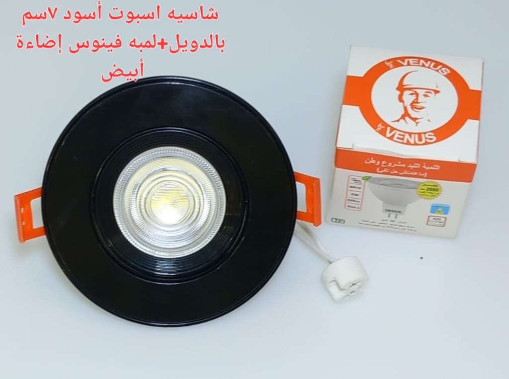 / شاسيه اسبوت اسود 7 سم بالدويل+ لمبه كأس فينوس اضاءة ابيض
