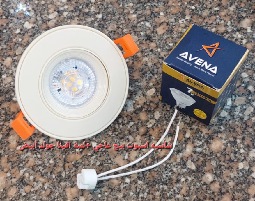 شاسيه اسبوت أبيض*فضي 7سم شاسيه اسبوت اسود*دهبي بالدويل+لمبه كأس افينا جولد إضاءة ابيض