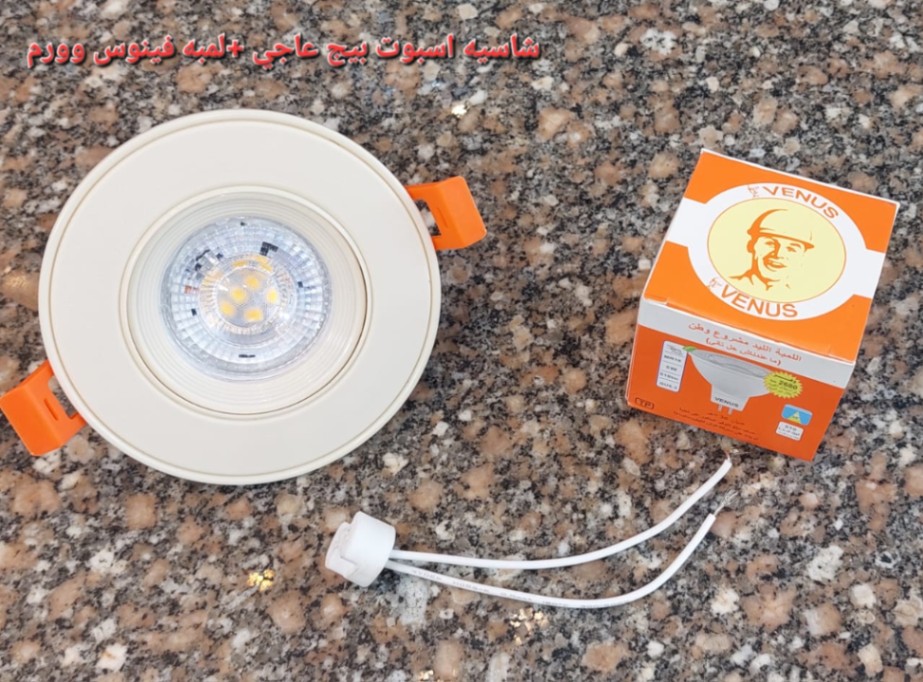 شاسيه اسبوت بيج عاجي + لمبة كاس فينوس إضاءة وورم