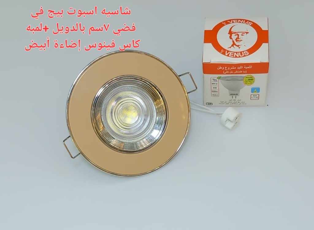 / شاسيه اسبوت بيج فى فضى 7 سم بالدويل+ لمبه كأس فينوس اضاءة ابيض