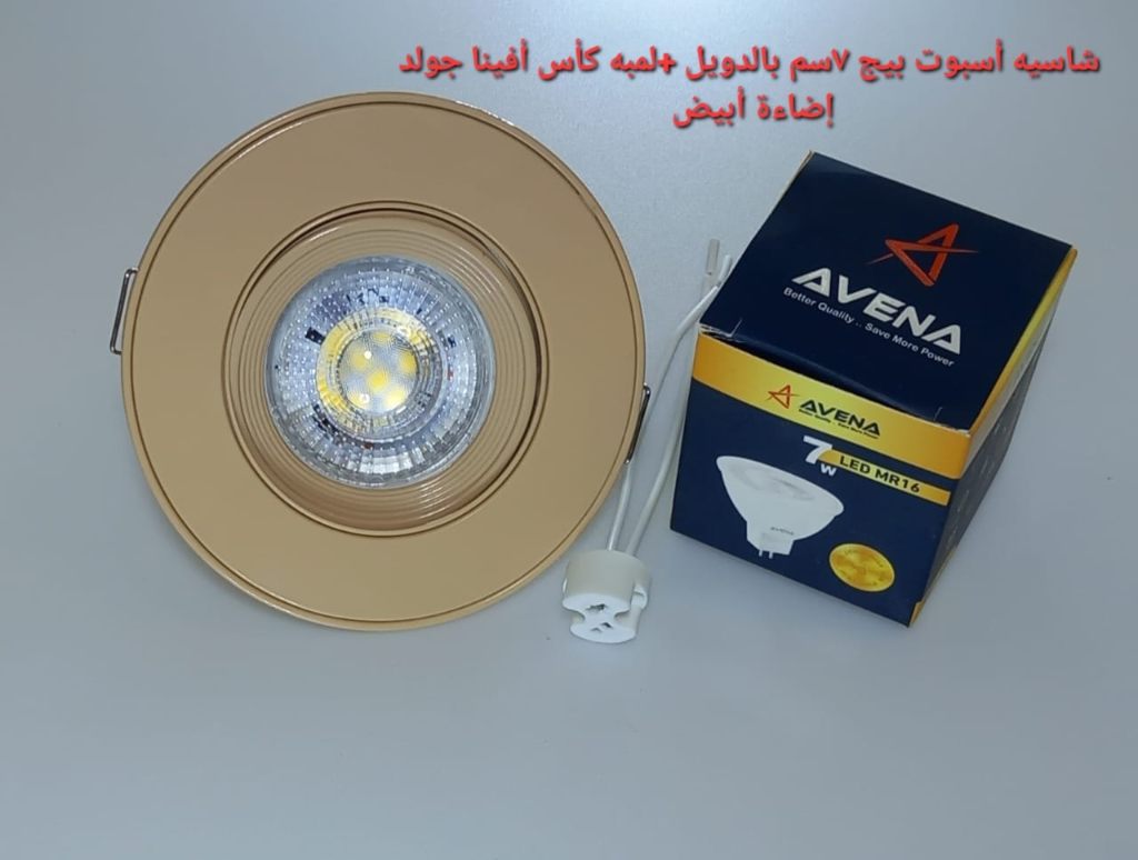 شاسيه اسبوت أبيض*فضي 7سم شاسيه اسبوت اسود*دهبي بالدويل+لمبه كأس افينا جولد إضاءة ورم