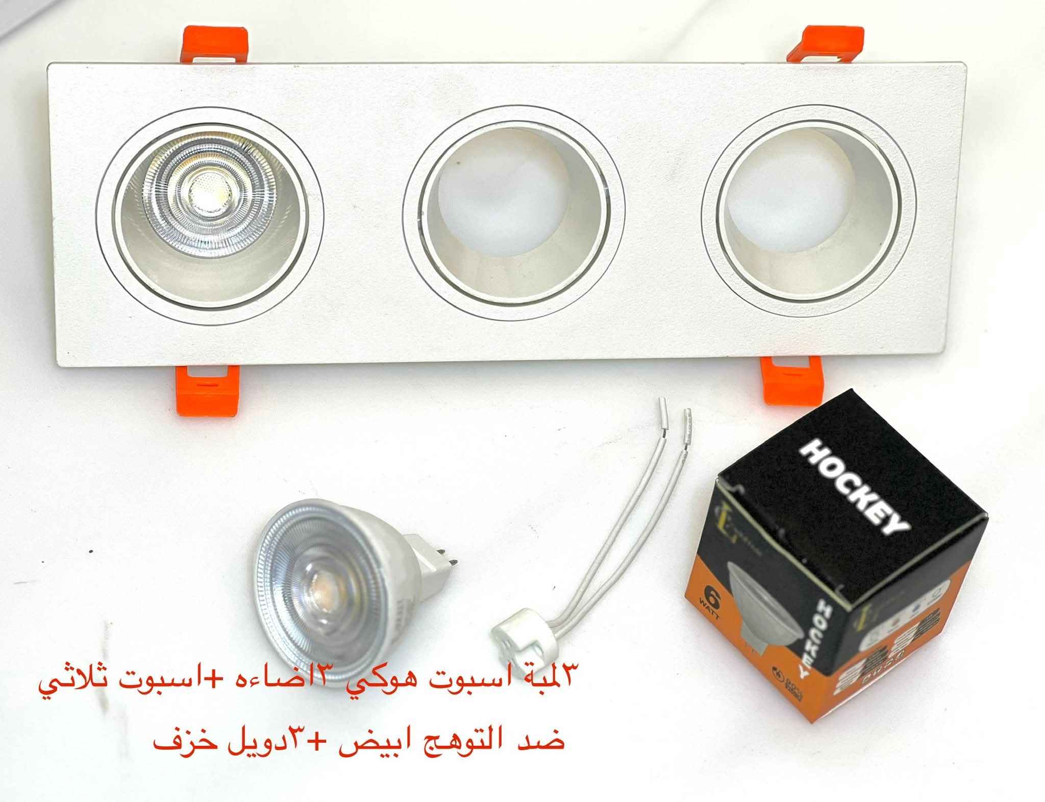 / شاسيه اسبوت ثلاثي ضد التوهج أبيض + 2 دويل خزف + 3 لمبة اسبوت هوكي 3 إضاءة