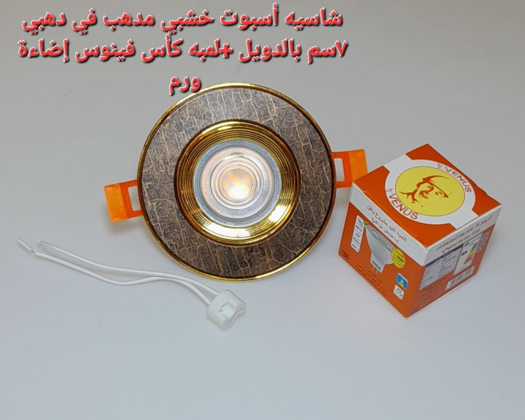 كمية شاسيه اسبوت خشبى مدهب في دهبي 7 سم بالدويل+ لمبه كأس فينوس اضاءة وورم