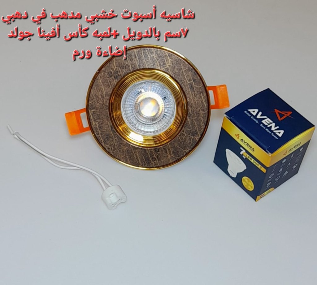 كمية شاسيه اسبوت خشبى مدهب في دهبي 7 سم بالدويل+ لمبه افينا جولد اضاءة وورم