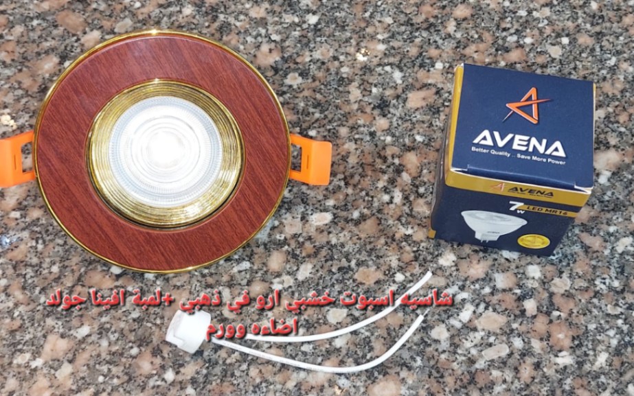 شاسيه اسبوت أبيض*فضي 7سم شاسيه اسبوت اسود*دهبي بالدويل+لمبه كأس افينا جولد إضاءة ابيض