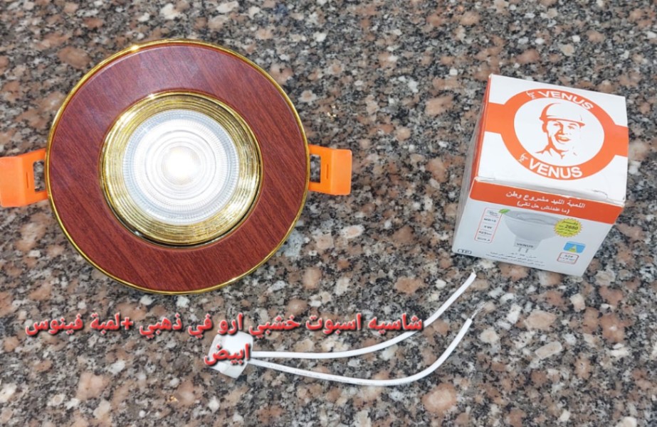 / شاسيه اسبوت خشبي أرو x ذهبي + لمبة كاس فينوس إضاءة أبيض
