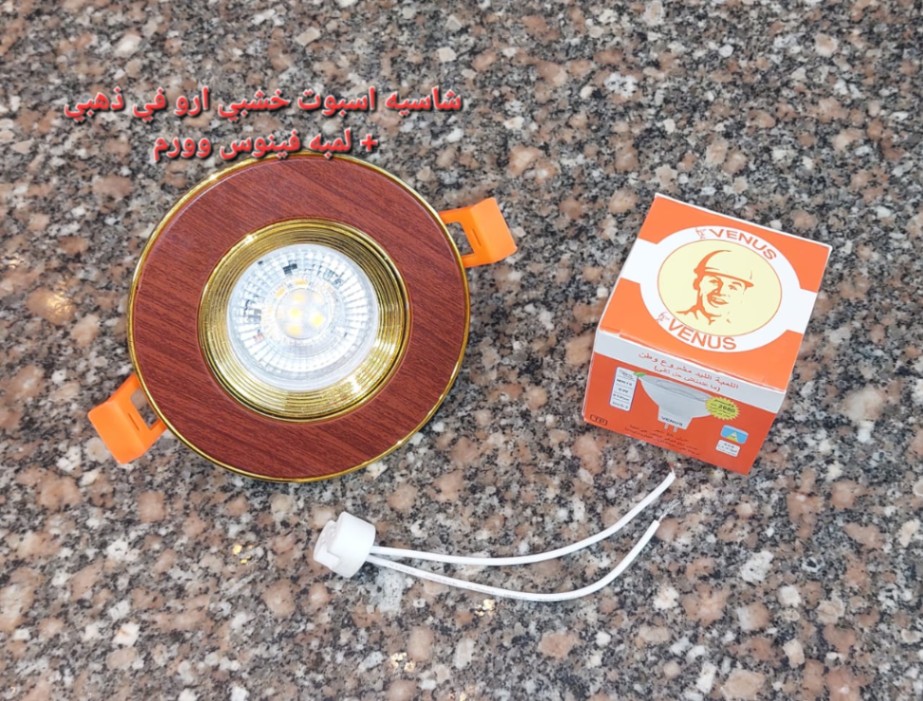 كمية شاسيه اسبوت خشبي أرو x ذهبي + لمبة كاس فينوس إضاءة وورم