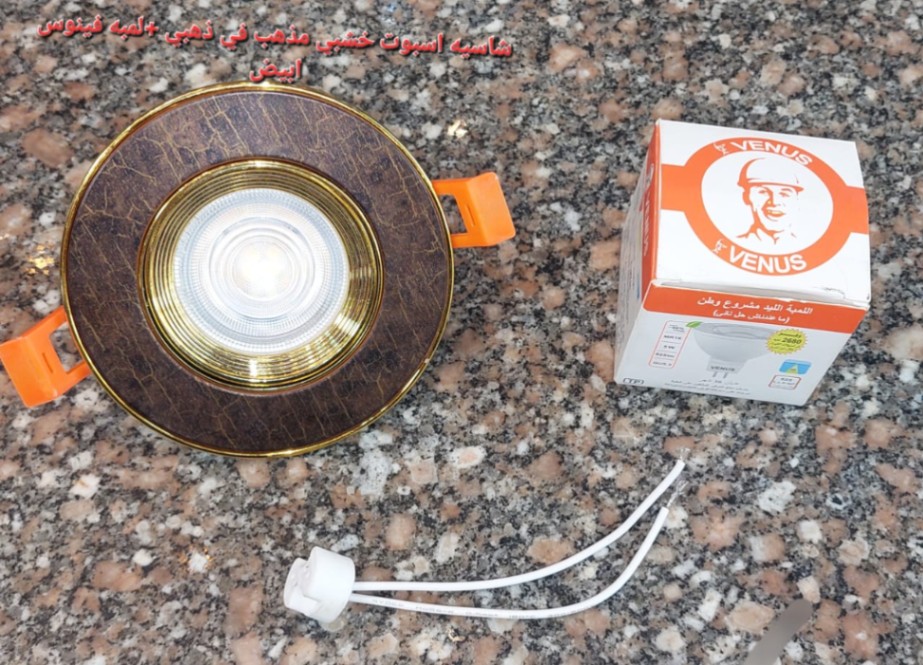 / شاسيه اسبوت خشبي مذهب x ذهبي + لمبة كاس فينوس إضاءة أبيض