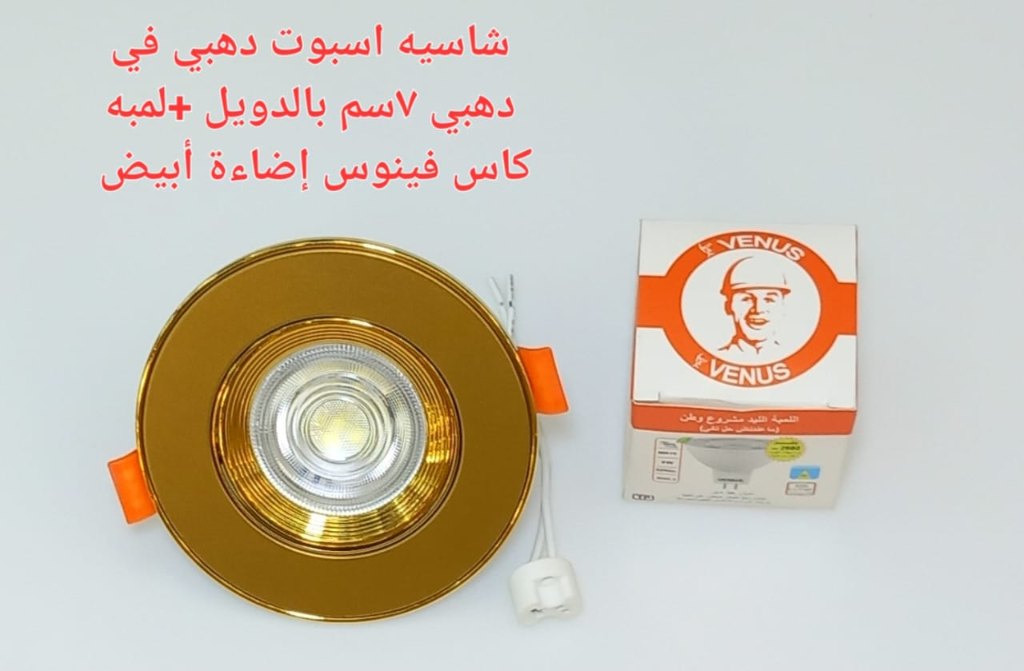 كمية شاسيه اسبوت دهبى فى دهبى 7 سم بالدويل+ لمبه كأس فينوس اضاءة ابيض