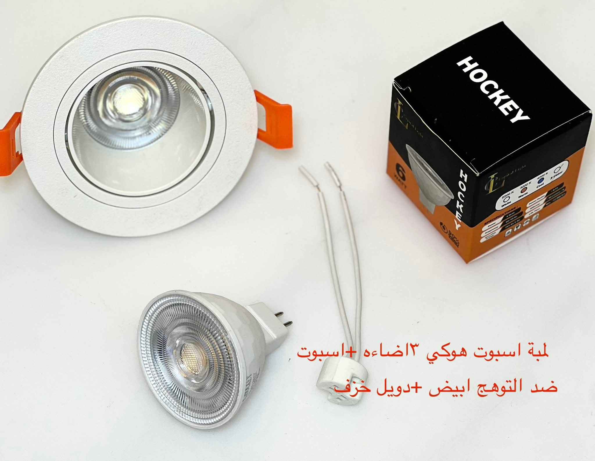 / شاسيه اسبوت ضد التوهج أبيض + دويل خزف + لمبة اسبوت هوكي 3 إضاءة