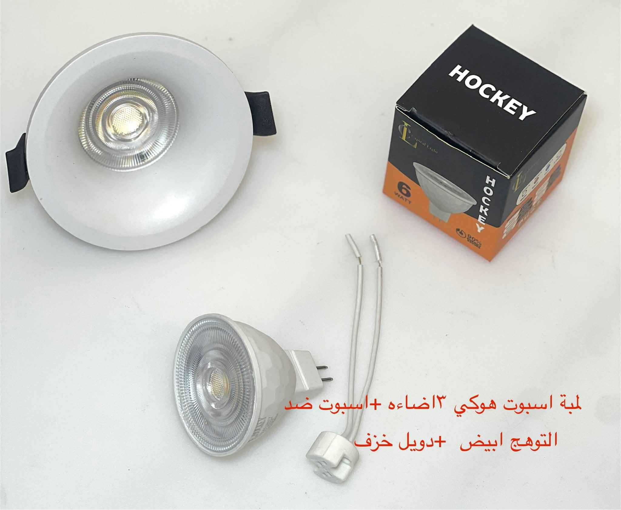 / شاسيه اسبوت ضد التوهج أبيض + دويل خزف + لمبة اسبوت هوكي 3 إضاءة