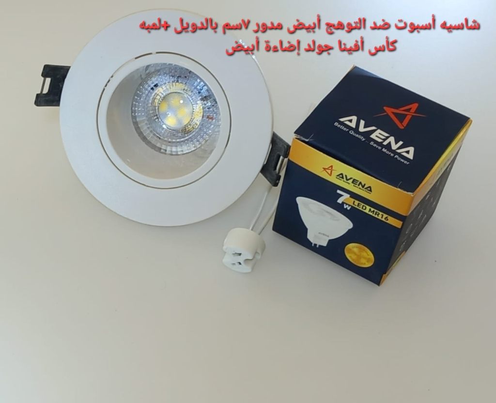 شاسيه اسبوت أبيض*فضي 7سم شاسيه اسبوت اسود*دهبي بالدويل+لمبه كأس افينا جولد إضاءة ابيض