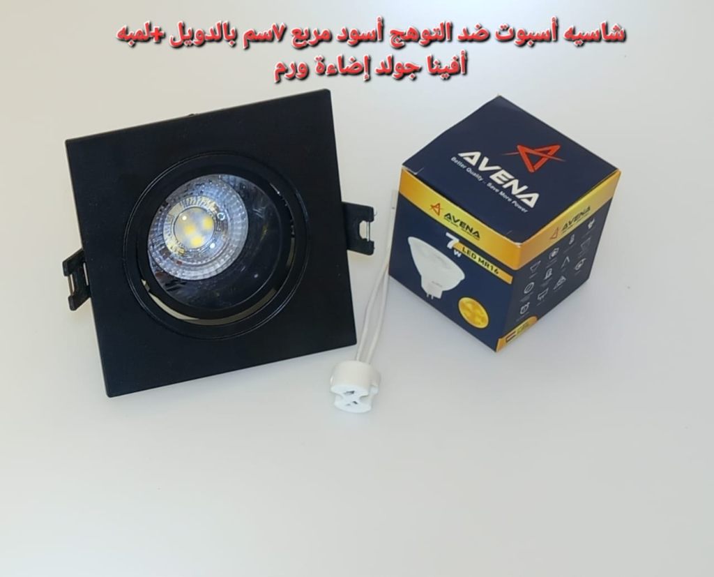 / شاسيه اسبوت ضد التوهج اسود مربع 7 سم بالدويل+ لمبه كاس افينا جولد اضاءة وورم
