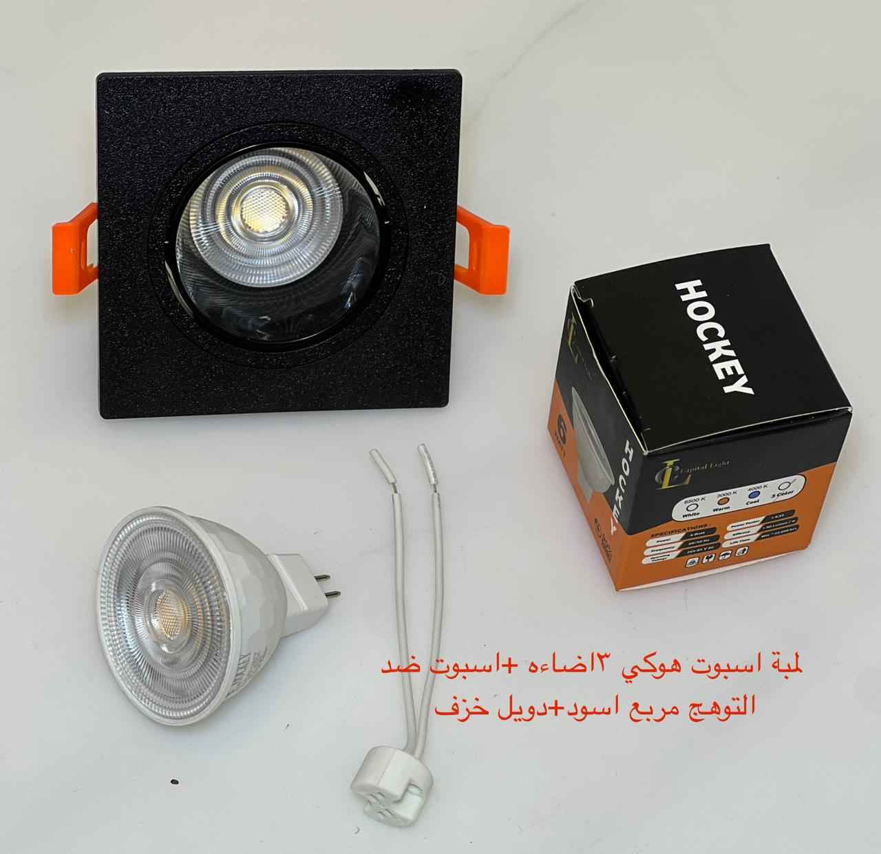 / شاسيه اسبوت فردي مربع أسود ضد التوهج + دويل خزف + لمبة اسبوت هوكي 3 إضاءة