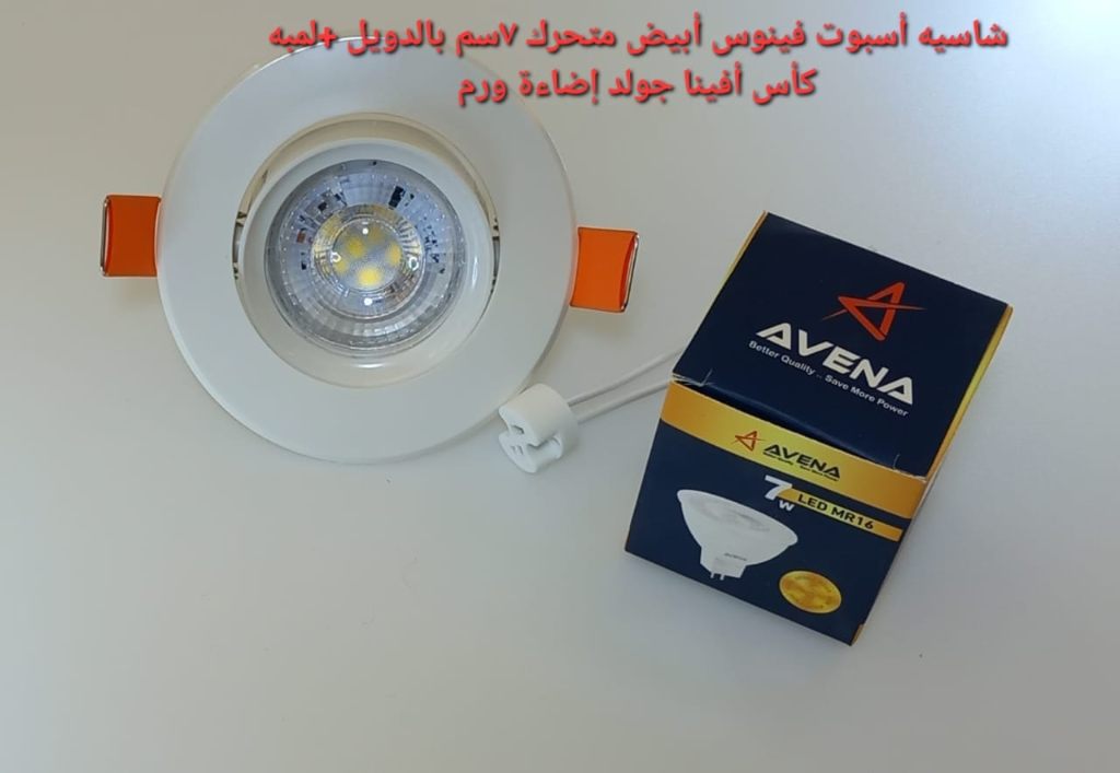 شاسيه اسبوت أبيض*فضي 7سم شاسيه اسبوت اسود*دهبي بالدويل+لمبه كأس افينا جولد إضاءة ابيض