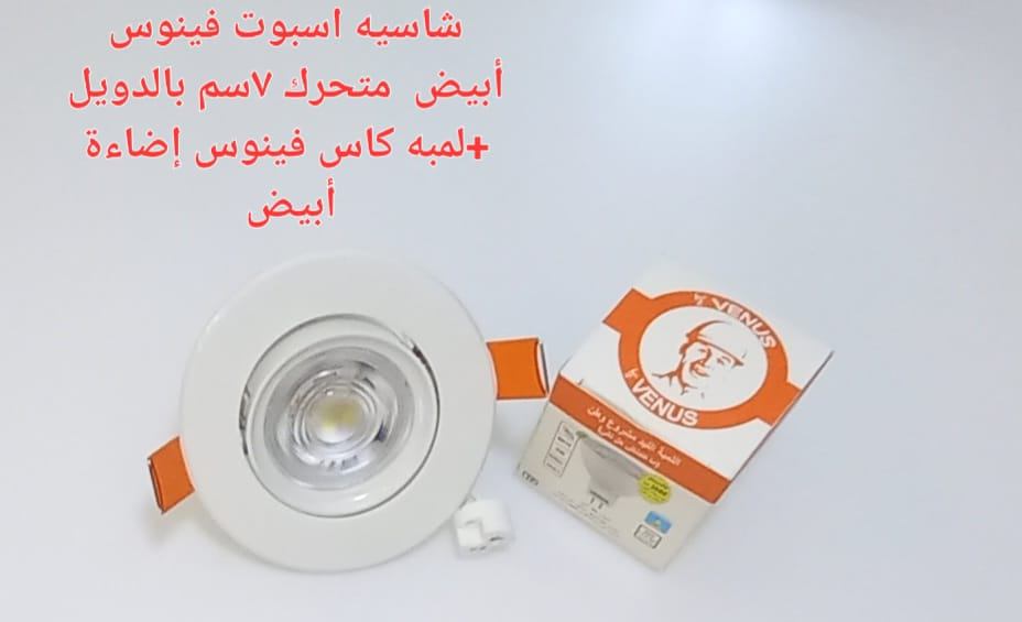 شاسيه اسبوت فينوس ابيض متحرك 7 سم بالدويل + لمبه كأس فينوس اضاءة ابيض