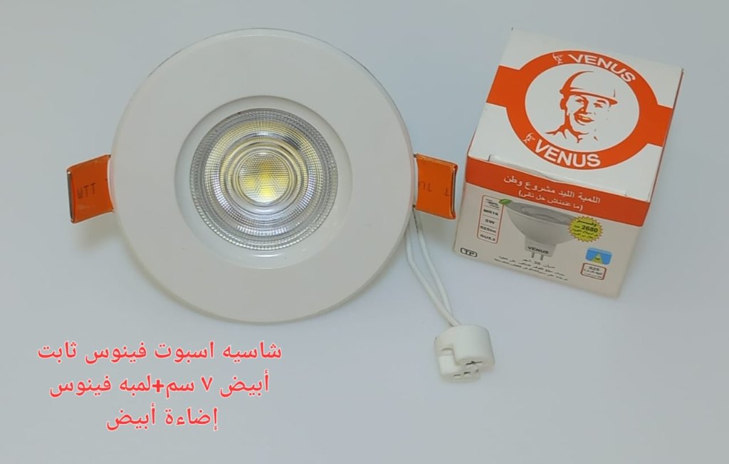 / شاسيه اسبوت فينوس ثابت 7 سم بالدويل+ لمبه كأس فينوس اضاءة ابيض