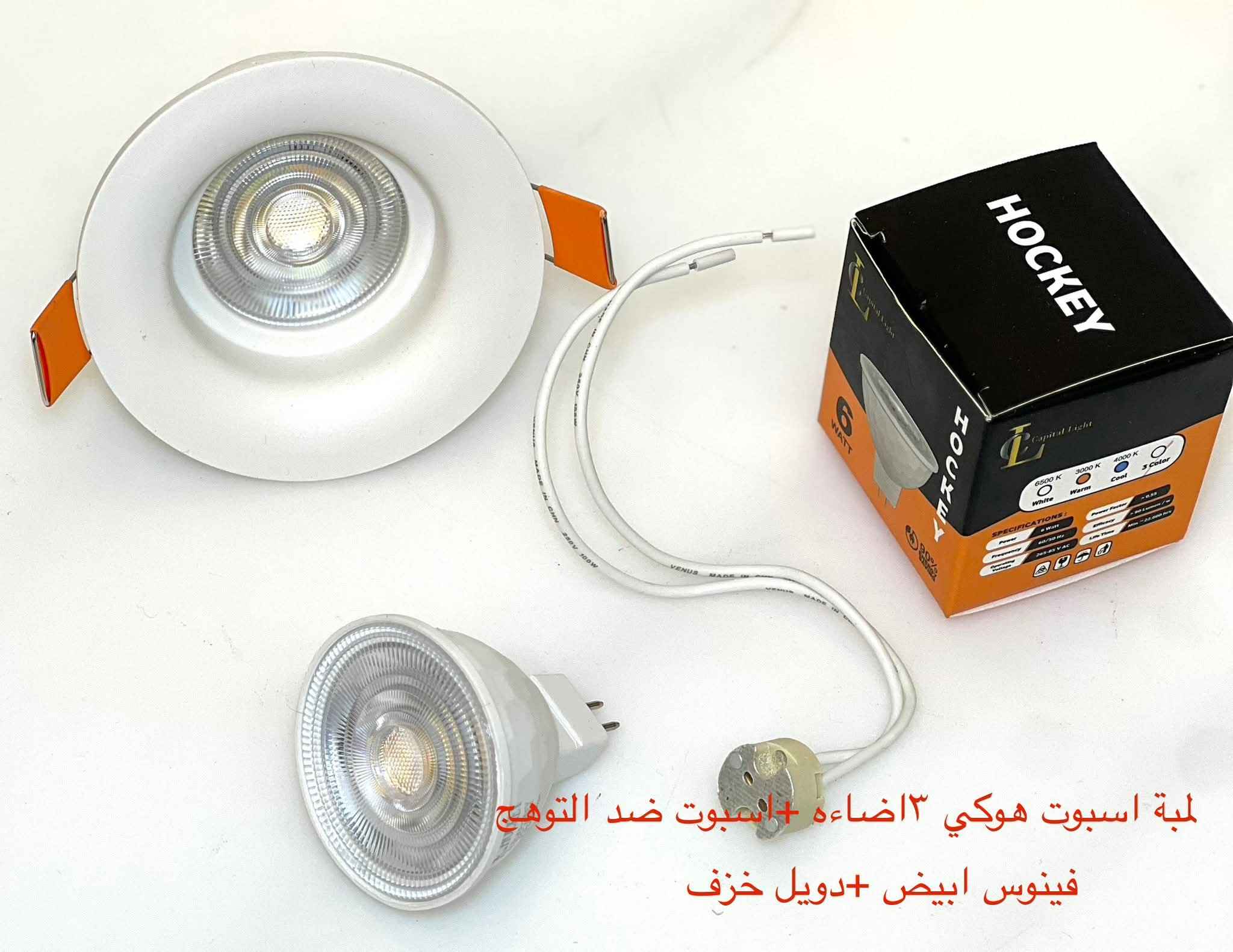 / شاسيه اسبوت فينوس ضد التوهج أبيض + دويل خزف + لمبة اسبوت هوكي 3 إضاءة