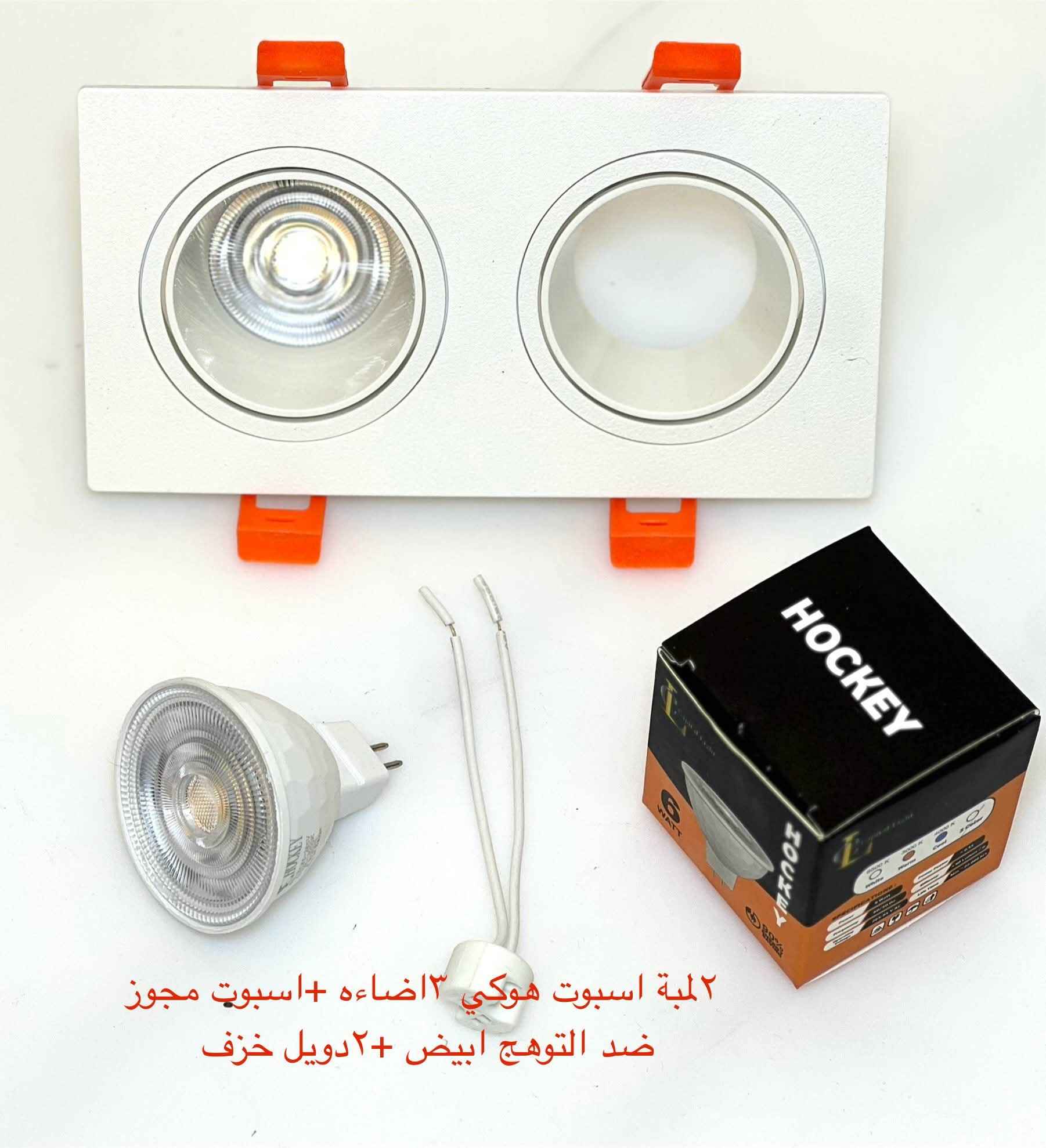 / شاسيه اسبوت مجوز ضد التوهج أبيض + 2 دويل خزف + 2 لمبة اسبوت هوكي 3 إضاءة