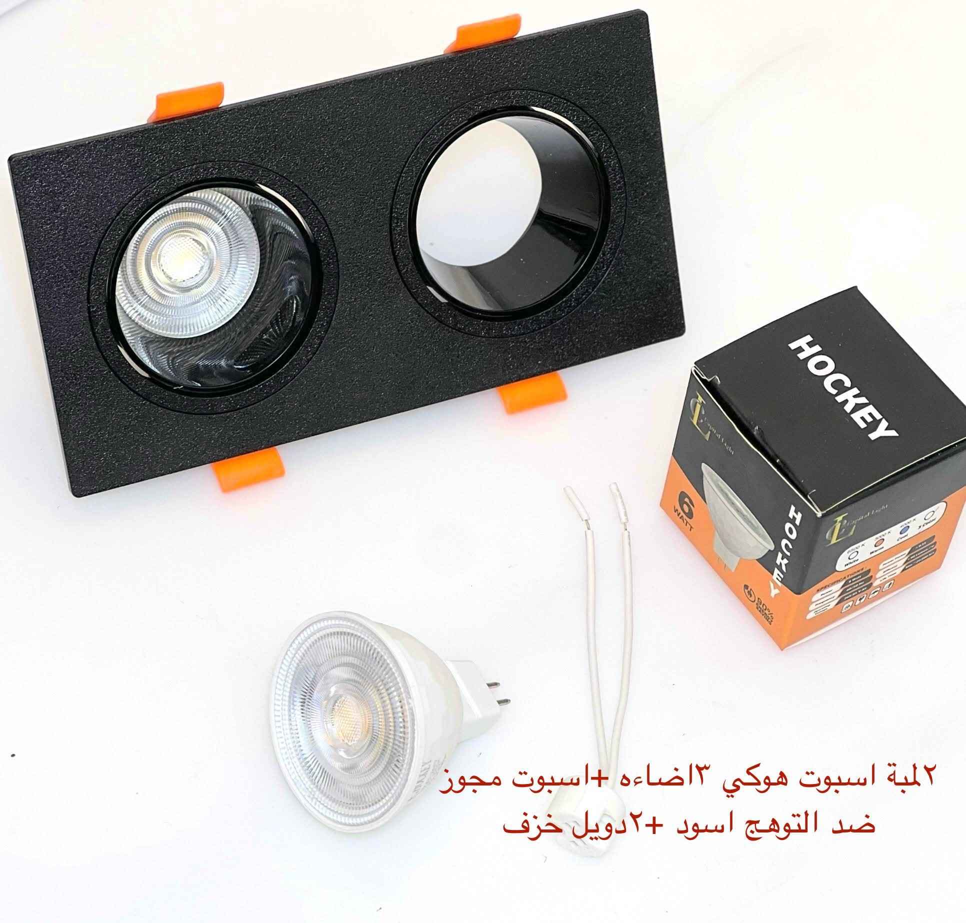 / شاسيه اسبوت مجوز ضد التوهج أسود + 2 دويل خزف + 2 لمبة اسبوت هوكي 3 إضاءة