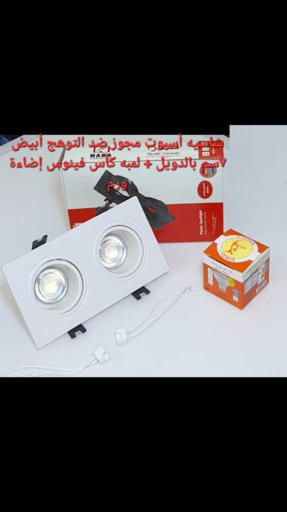 كمية شاسيه اسبوت مجوز ضد التوهج ابيض 7 سم بالدويل+ لمبه كأس فينوس اضاءة وورم